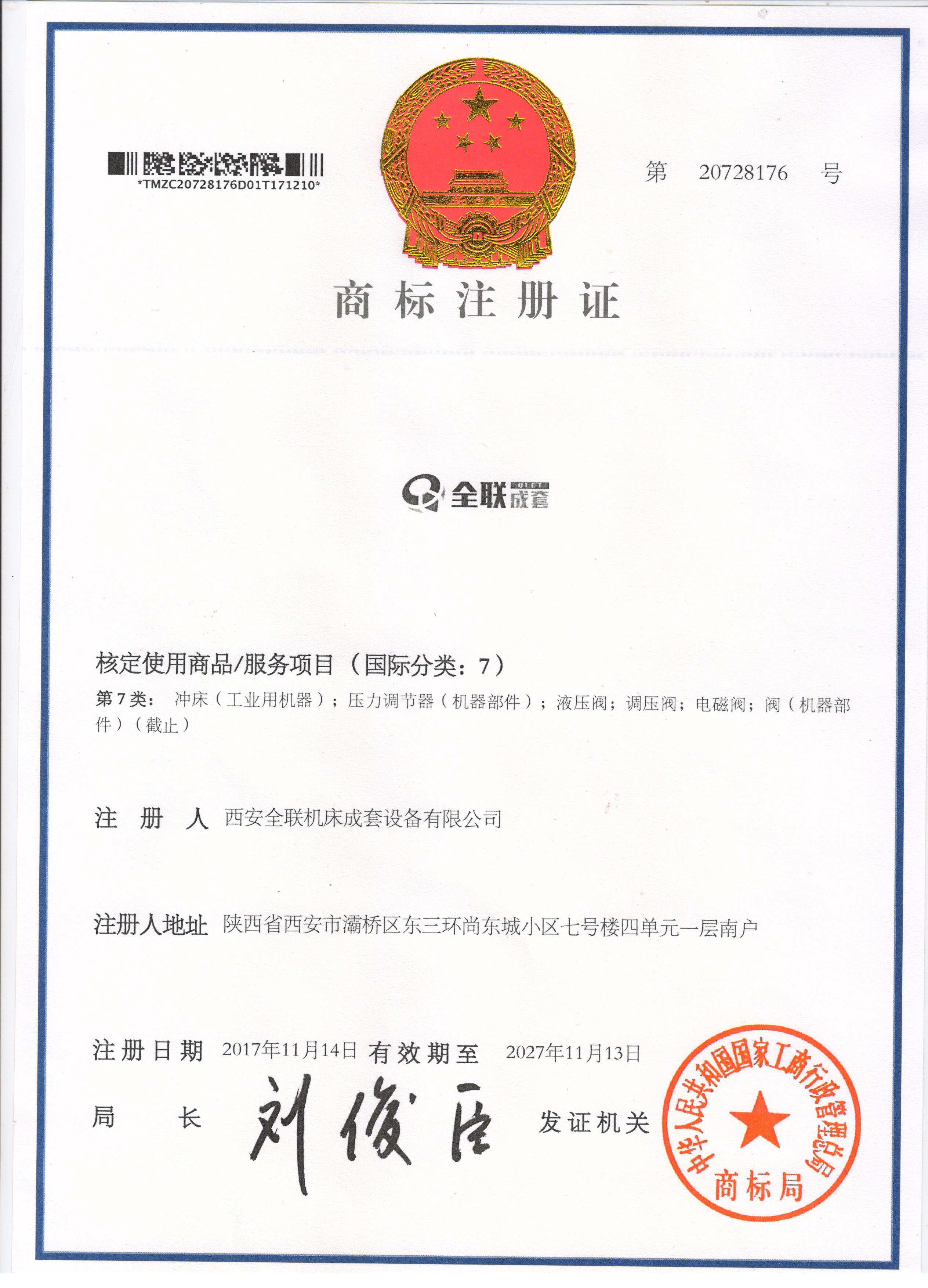 QLCT我(wo)们成套商标(biāo)注冊證書