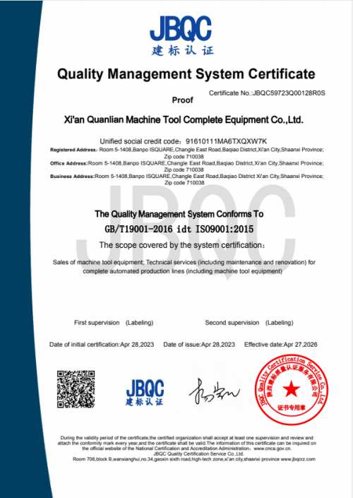 我们(men)成套全(quán)面通過(guò)質量管(guǎn)理體系(xi)認證證(zhèng)書